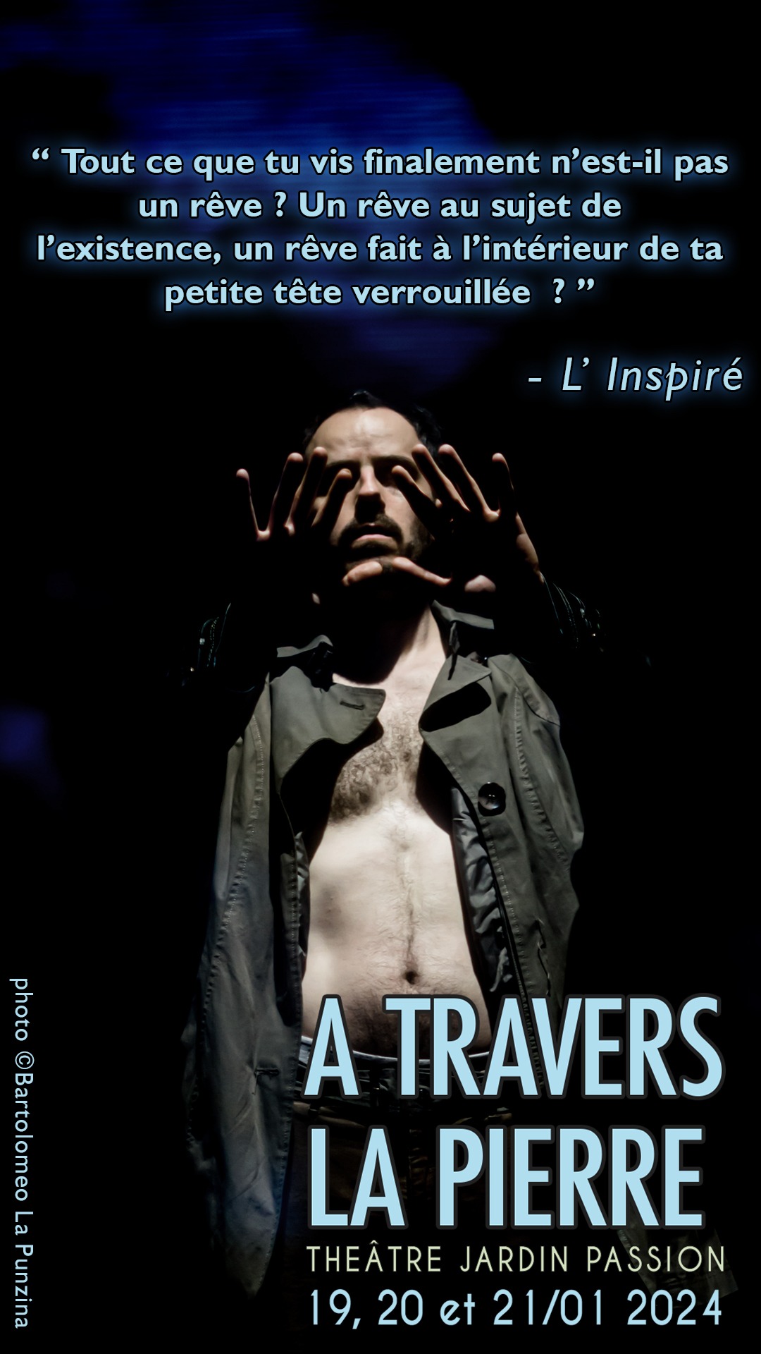Cette page est consacrée à mon passé pas si lointain d’acteur, dramaturge, et metteur en scène. Je vous expose ici un petit nombre de souvenirs entre créations et interprétations, lequel donnera un aperçu de mon univers dans le jeu scénique. Comptons parmi eux certains moments charnières qui ont alimenté ma recherche artistique dans mon parcours, chahuté par diverses bifurcations qui furent nécessaires à mon geste de plasticien.